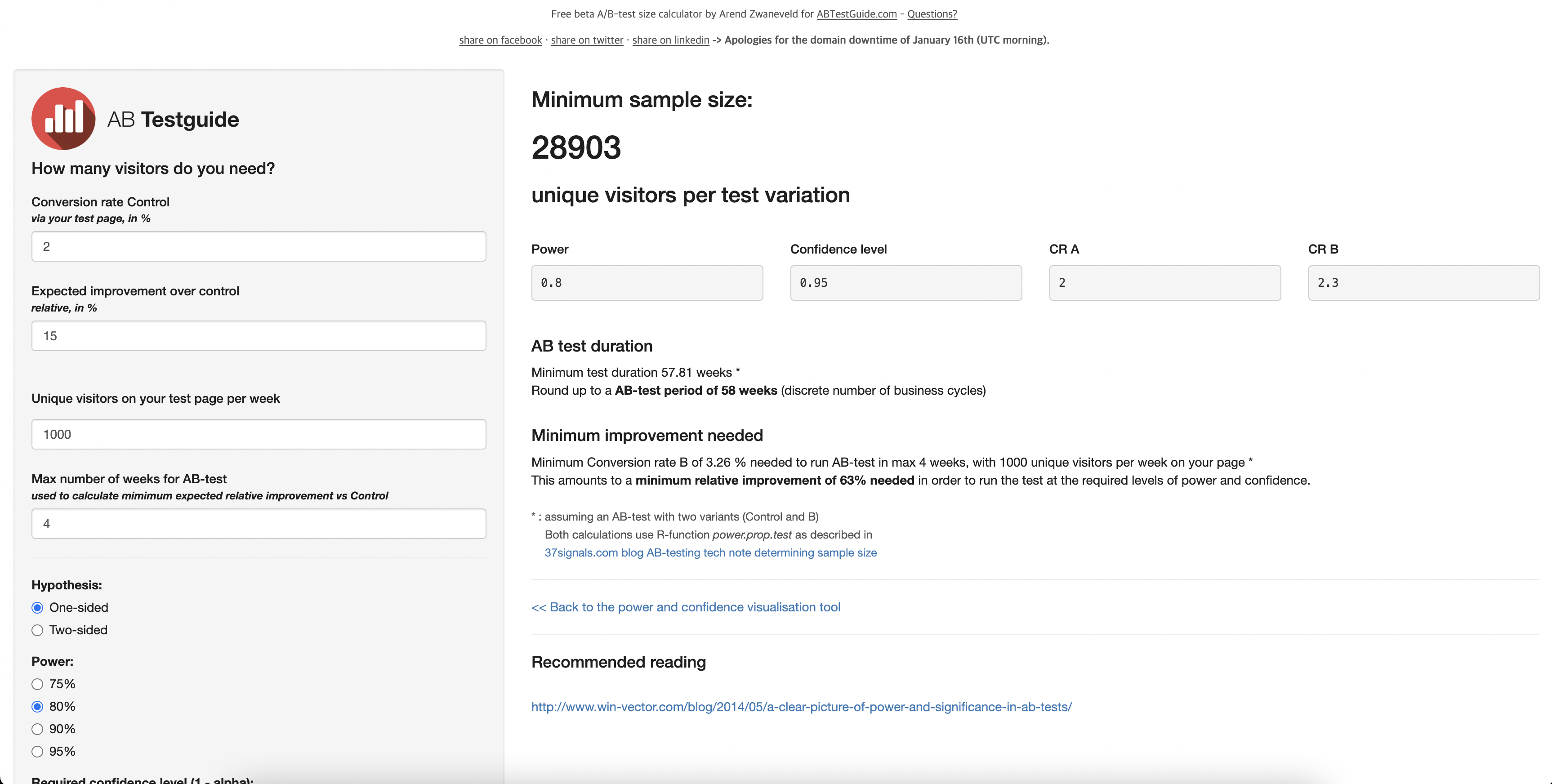 A/B test에서 최종 의사결정은 통계직 기반으로 결정하게 되는데 이때 결과에 대한 신뢰성을 보장하기 위해서는 충분한 표본크기를 필요로 합니다. 해당 내용은 어느 정도 표본크기가 필요하나에 대한 검정력 분석, 최소 표본크기에 대한 글을 참고해 주시기 바랍니다.